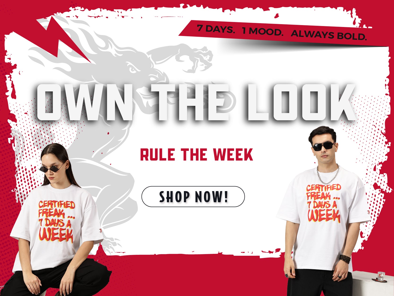 FB Certified Freak 3D Puff Print Oversized White T Shirt